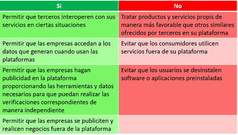 • Un gatekeeper tiene como obligación asegurar la interoperabilidad con su plataforma.