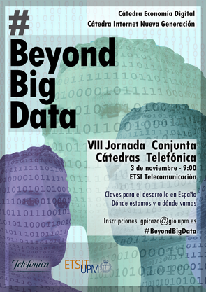 Las Cátedras Telefónica en la Escuela Técnica Superior de Ingenieros de Telecomunicación, de la Universidad Politécnica de Madrid, “Cátedra Internet de Nueva Generación” y “Cátedra Economía Digital”, te invitan a la VIII Jornada Cátedras Telefónica UPM “Beyond Big Data».